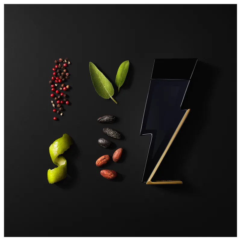 • Design Icônico: o frasco em forma de raio reflete sua energia elétrica e personalidade única.